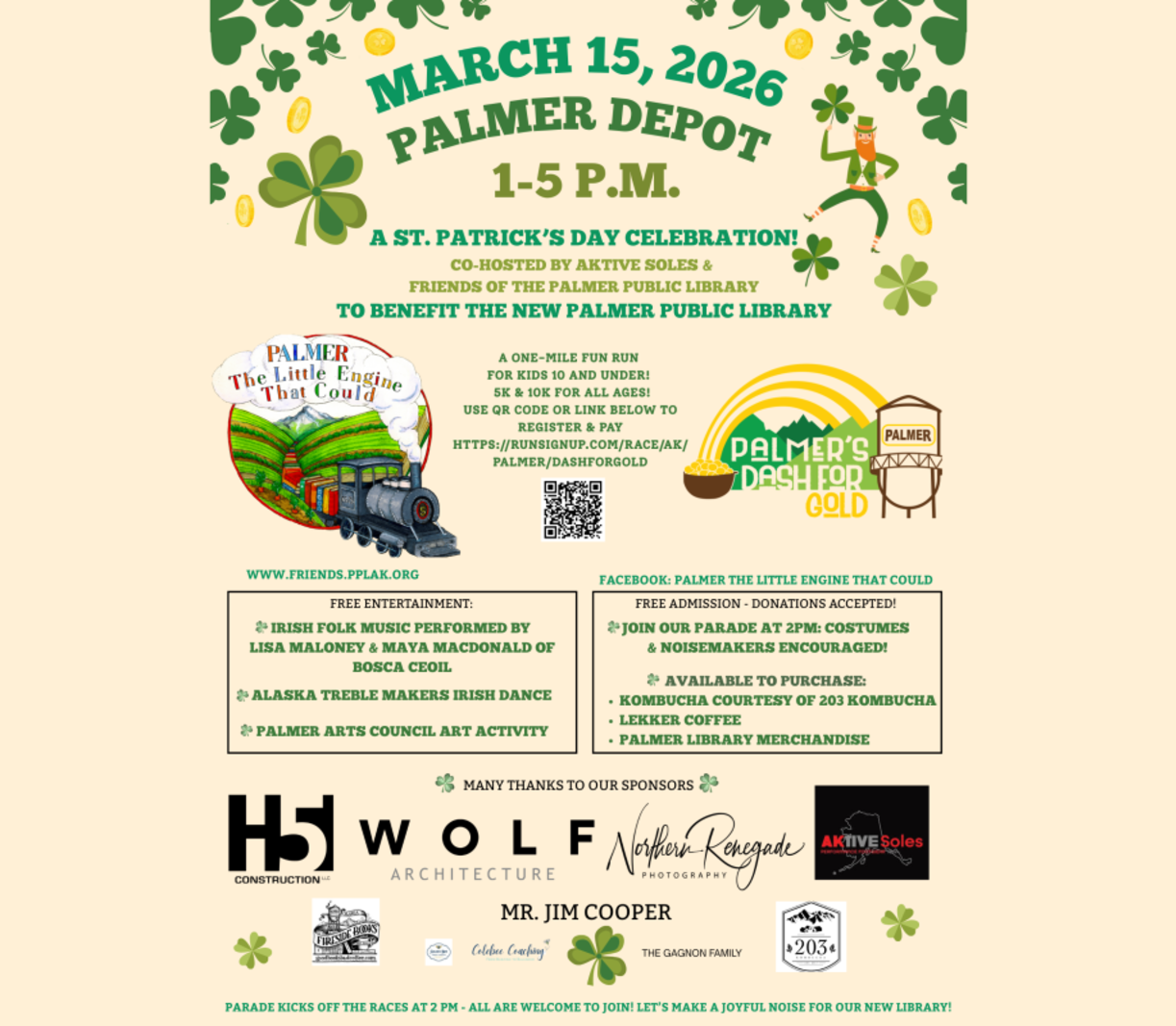 Come and help us celebrate the soon-to-be groundbreaking for the NEW Palmer Public Library! AKtive Soles Performance Footwear and The Friends of the Palmer Public Library are joining forces to raise funds to help outfit the interior of the new library and to provide an opportunity for all to feel as if they contributed to the library and to make a joyful noise that it's finally happening! This will be a very fun St. Patrick's Day themed event, family friendly, with something for everyone to enjoy!