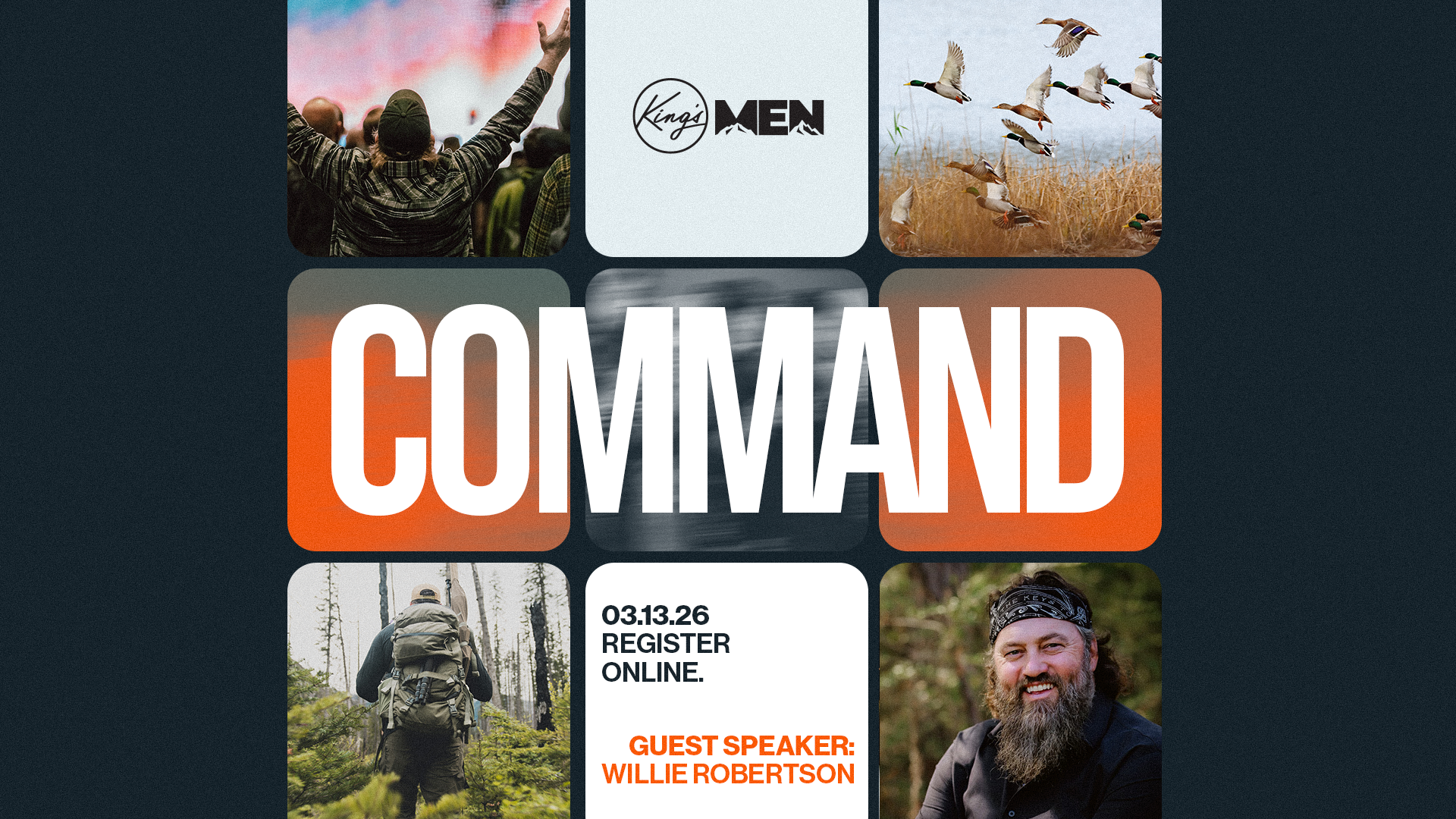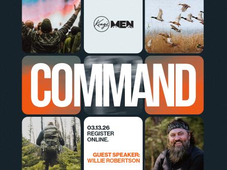 At Command, you will gather with other men for great food, strong fellowship, and a clear message on identity and leadership. Willie Robertson will share from his life and faith, challenging men to stand firm, lead well, and live with conviction.
