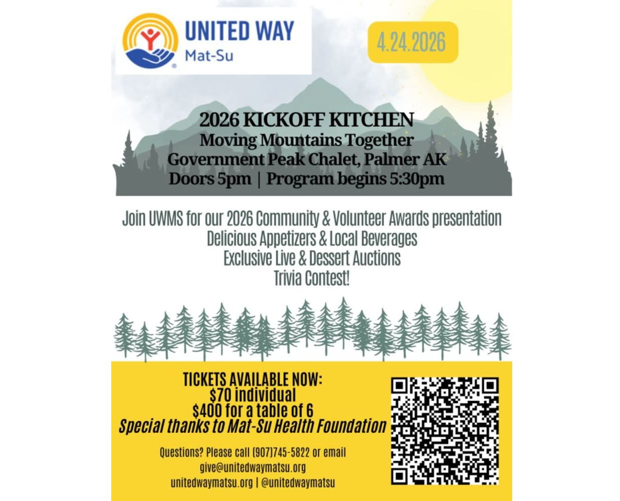 Join United Way of Mat-Su on April 24 for our 2026 Community and Volunteer Awards presentation!